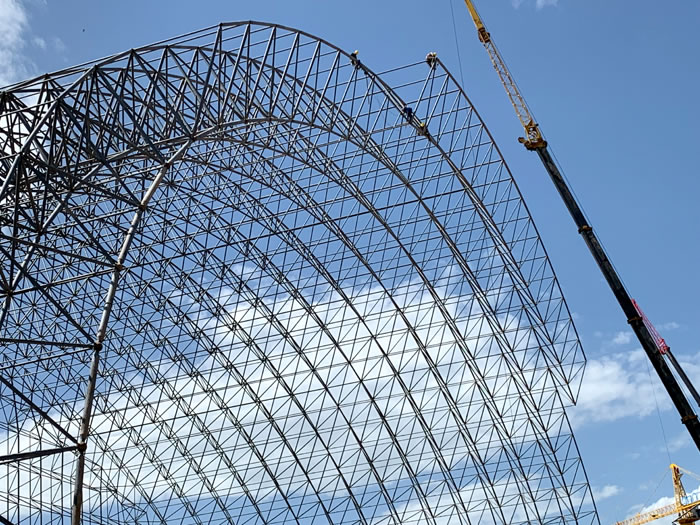 (2)网架加工前应对现场尺寸进行复测,确认无误后方可进行加工、安装;网架制作、运输、安装应遵守《空间网格结构技术规程》JGJ7-2010、《钢网架濮阳螺栓球节点》JG/T 10-2009、《钢网架濮阳螺栓球节点用高强度螺栓》 GB/T 16939-2016、《濮阳钢结构濮阳工程濮阳施工规范》 GB50755-2012、《濮阳钢结构濮阳工程濮阳施工质量验收标准》 GB50205-2020。
